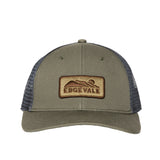 The Patch Logo Trucker Hat is built from breathable cotton twill and mesh and features a custom embroidered twill Edgevale logo patch. It is structured with a slightly curved visor and a snapback closure. Light and sturdy with the perfect structured profile, this trucker only gets better with age.